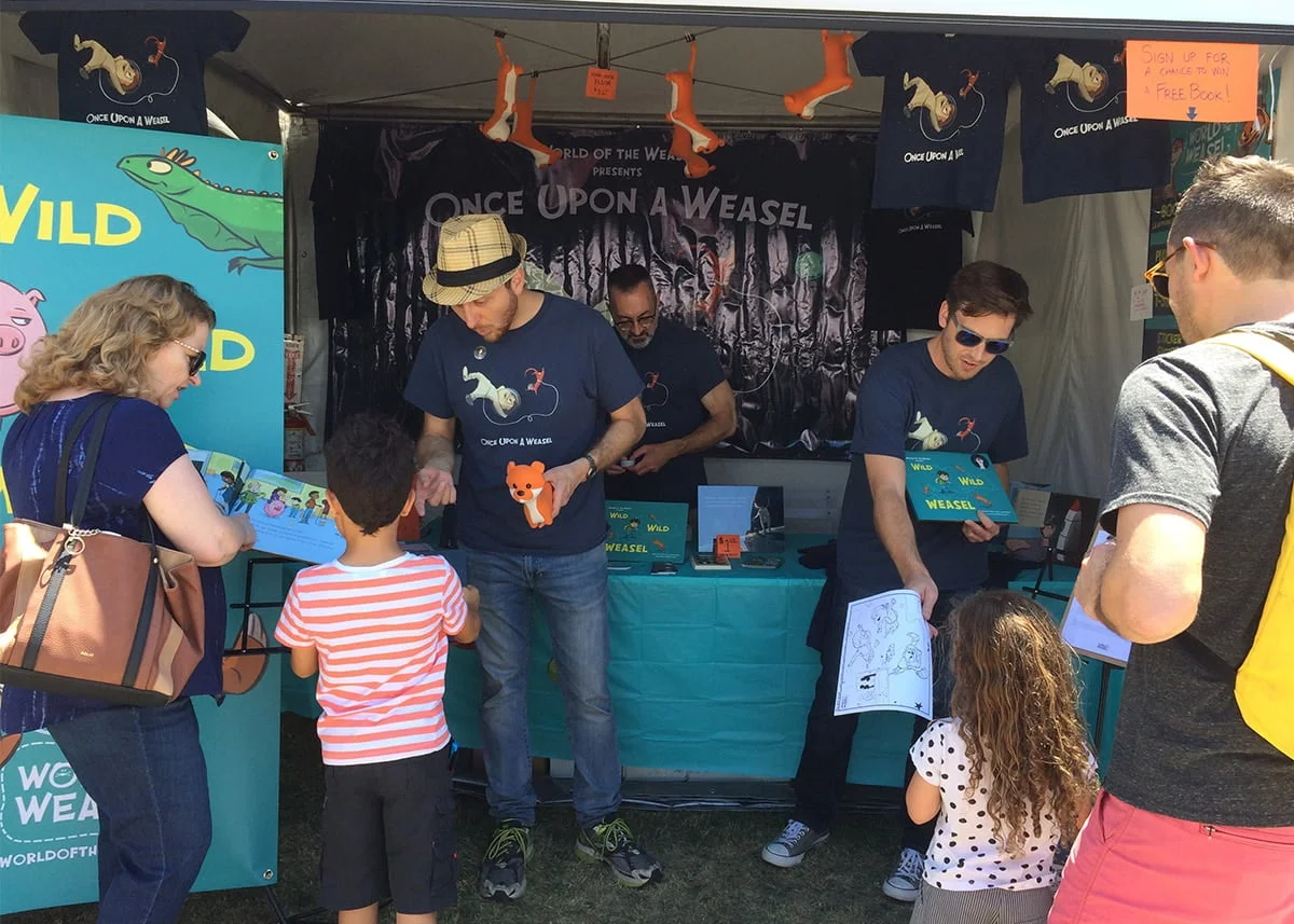 Find World of the Weasel’s booth right by the Storyteller Stage and Petting Zoo!